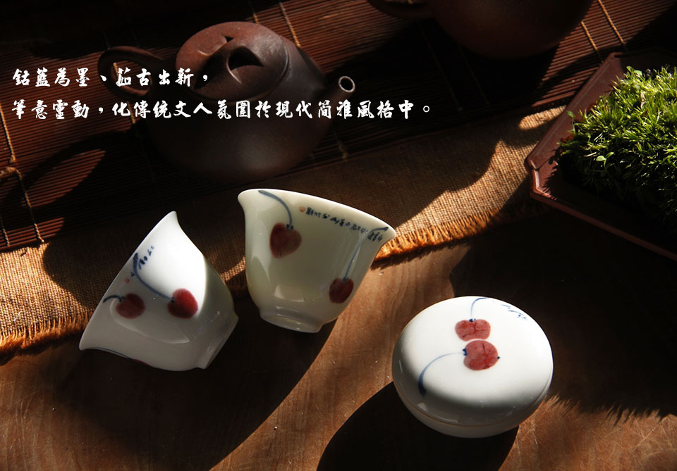 In the Blue-and-Red Underglaze series, the artist creatively presents cherries with a playful touch. The vibrant and layered copper-red glaze used is known for its intricate firing process. The red cherries painted within the glaze display a gradient of colors, alternating between alluring brightness and delicate pinkness, creating an adorable and enticing effect.