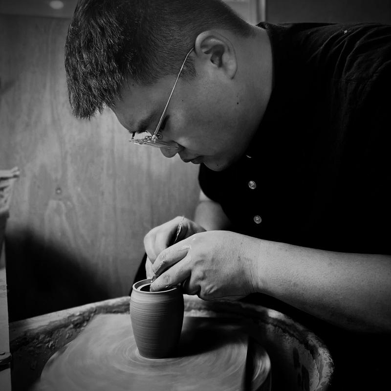 為了忠於自己追求乾淨利落的態度,在器型上有著嚴謹的、細緻的線條。更期許自己的作品具有細膩的質感、簡潔的器型、輕巧的使用感,希望能夠展現出輕巧、雅緻、兼具實用性的茶器具及茶席風格。