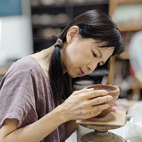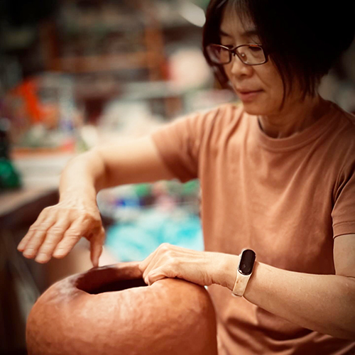 在人生後期,決定重拾藝術夢想,於紫岩陶舍學習陶藝,專注於捏陶和造型創作。繪畫與陶藝的結合成為了她創作的動力,尤其是在製作茶具時,繪畫基礎讓她更加得心應手,在陶藝世界裡找到了無限的快樂與自由。