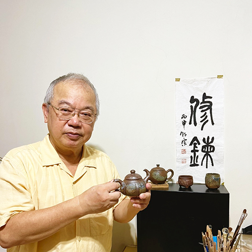 在台灣岩礦初萌的時期即跟古川子老師學作岩礦壺,為台灣岩礦發展的先驅者。