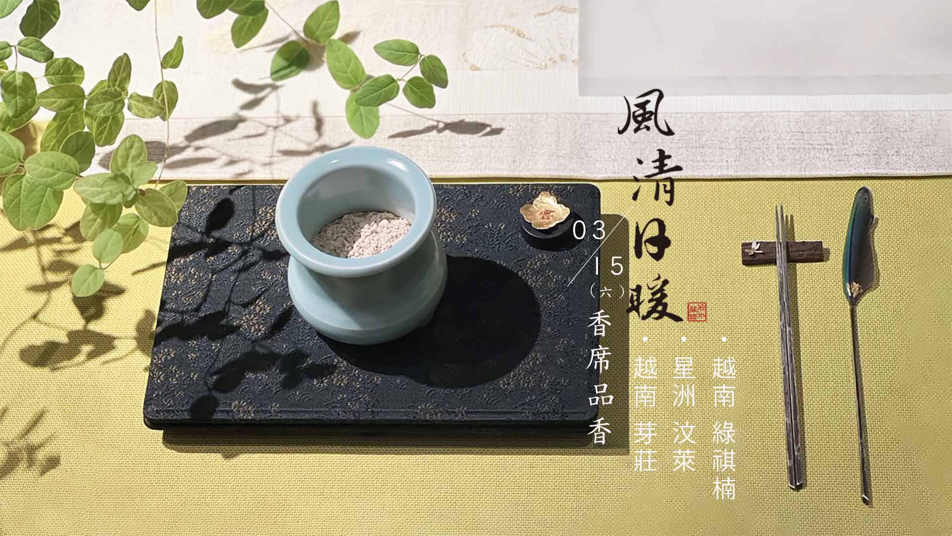 .3/15 (六) PM2:00-3:00 香席品香 (報名入席) ➤ 點此報名