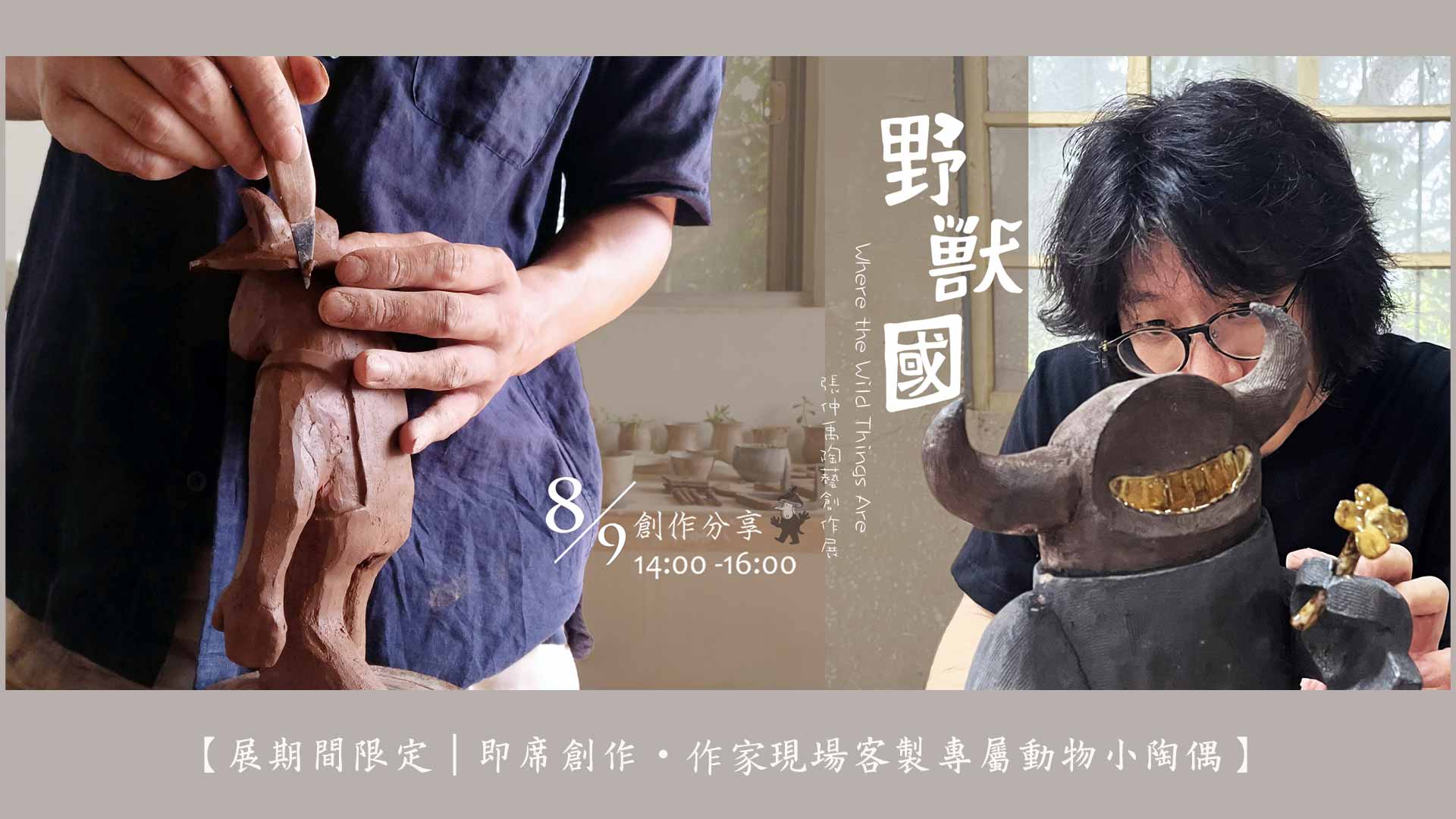 活動當日,將從報名者中選出三位幸運參與者,由本次展出的陶藝家張仲禹根據他們他們的敘述或想法,即席創作專屬動物小陶偶,公開作品幕後的製作過程!